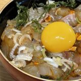 別に作った温泉玉子や生卵の黄身をのせても美味しい!合わせ調味料は刺身10切れ分くらいいけますし、たくさん作るのに足りなければ、複数頼むか、多少ならミニキッチンのしょう油やみりんで増量してください。ご飯をすし酢であえれば寿司も握れます。