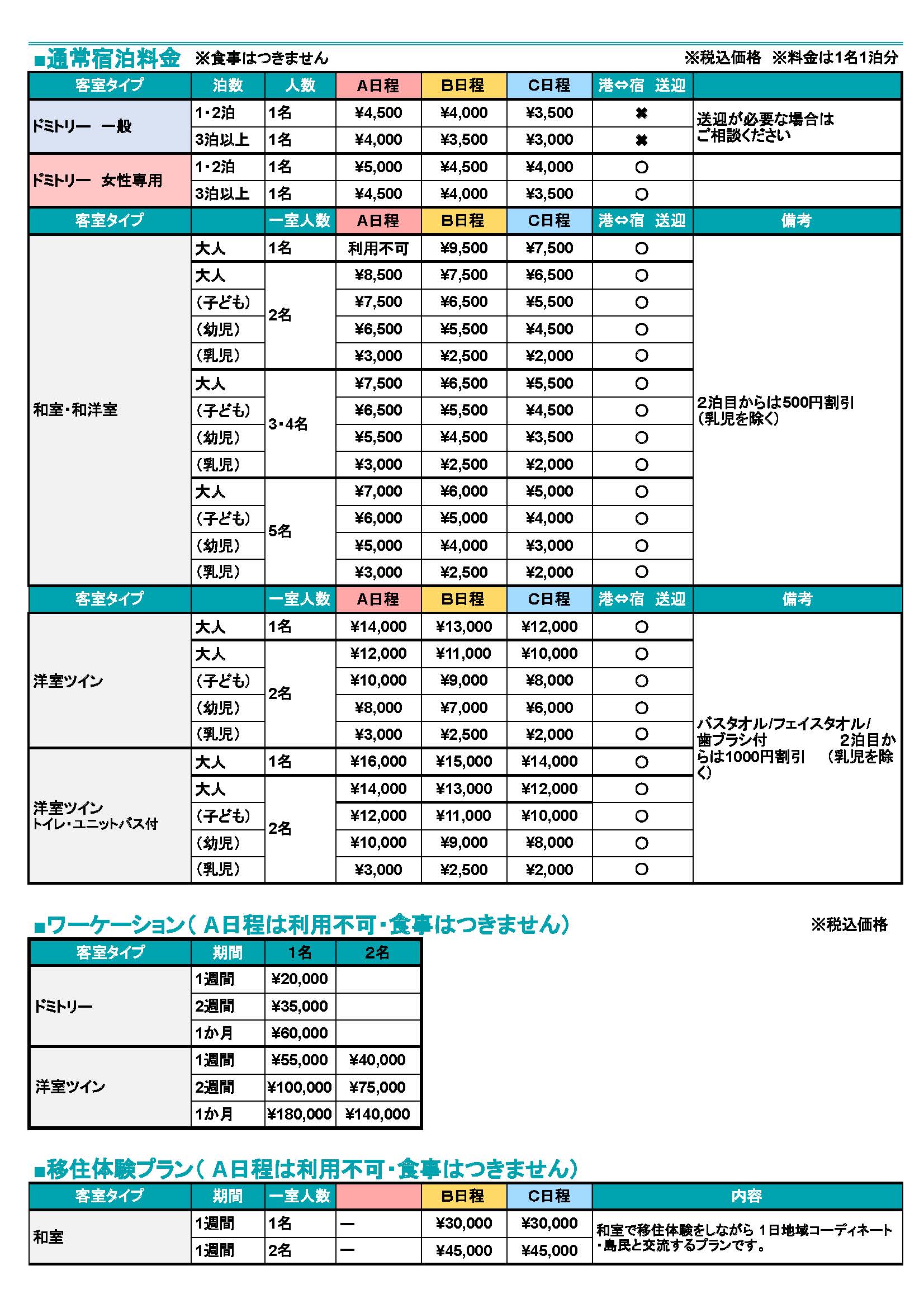 当施設では、運営の効率化やコスト削減に努め、価格の維持に努めてまいりましたが、昨今の物価上昇などを受けまして、2026年3月1日(日)より宿泊料金を改定させていただくことになりました。