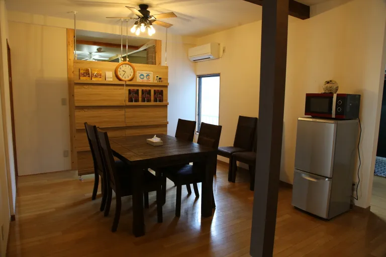 宿泊施設内は高速Wi-Fiが完備されており快適にインターネットがご利用いただけます。洋室にはデスク&チェア、モニターを備え、1F&2Fに共用のワーキングスペースを開放しております。